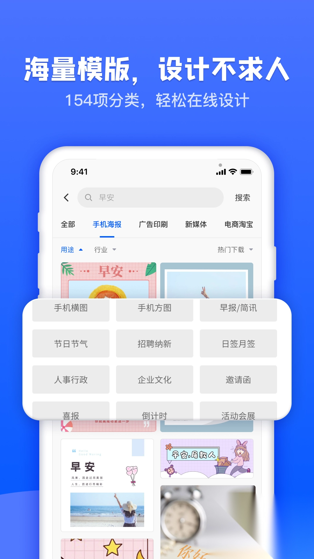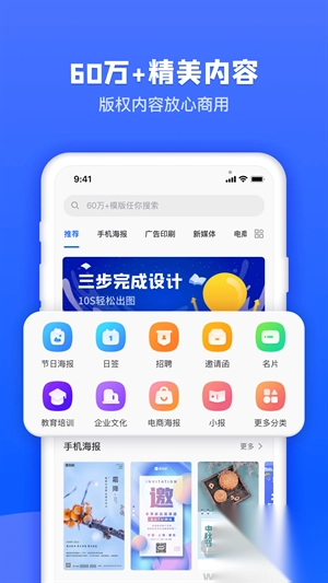 1、有详细的分类规划,你能够按颜色的风格进行挑选,协助用户完结各种手机的海报和图纸;