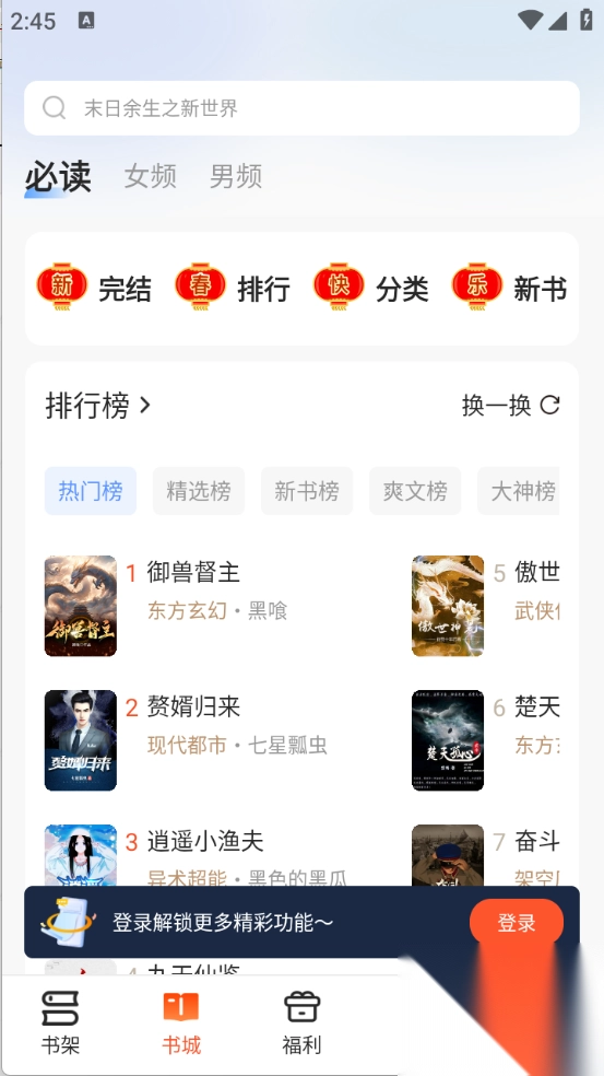 每日热门小说推荐