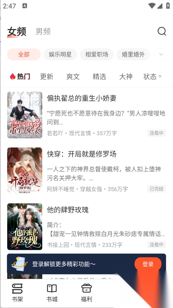 包含言情、仙侠、都市等各类热门题材的小说,保证用户能够寻觅到契合自身喜好的作品。