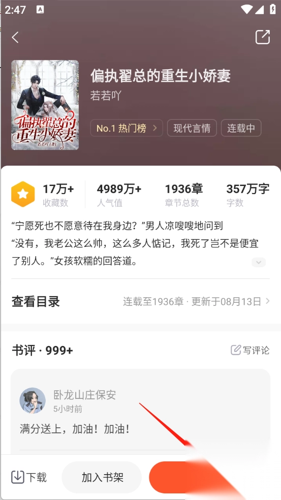 1、首先,打开你钟爱的小说,进入它的专属详情页。