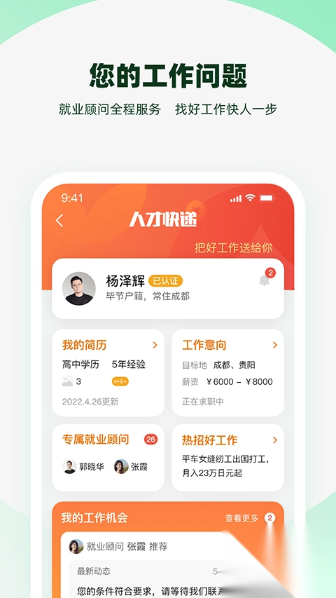 2、寻觅求职机会,一心为你找寻优质好工作,愿将理想岗位送到你面前。