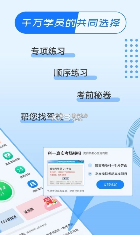 【2】我们为您带来全新的学车体验,摆脱枯燥的学习模式。通过多车型灯光模拟,我们真实还原了学车时的灯光操作,让您身临其境地感受驾驶过程。快来加入我们,享受沉浸式学车的乐趣吧!