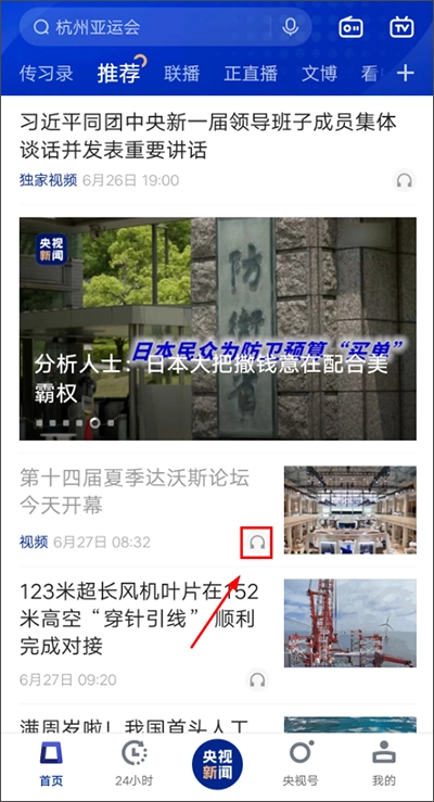 1. 下载并打开新闻联播app,在首页中,点击自己想听新闻的标题旁边的耳机图标就可以了。