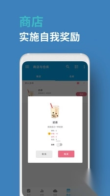 -【金币与商店】:作为自我奖励的游戏化体现形式。你需要先定好价格,上架相应的奖励商品。在完成任务得到金币奖励后,过来商店购买自己的奖励吧!