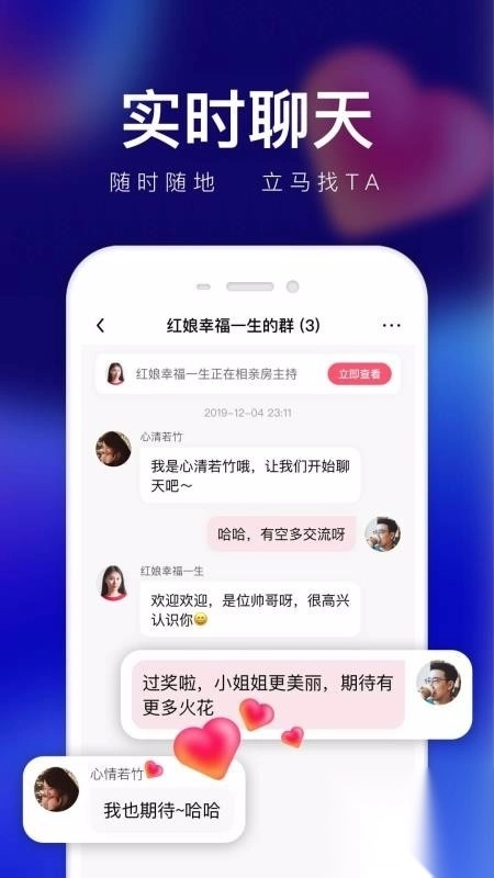可随意进入实时相亲房间,房间内仅有月老与相亲双方,高度还原线下相亲模式。