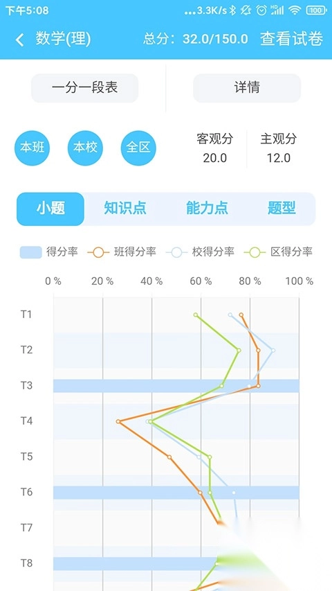1、查看成绩、排名、学科均衡性、成绩对比、进退步、分段统计分析。