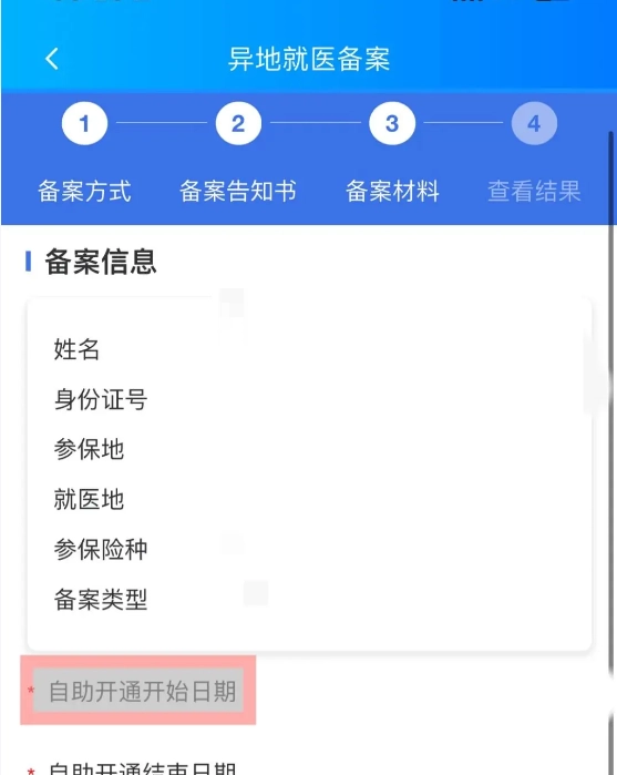 2、依据实际情形挑选“就医地”、“参保险种”以及“备案类型”。确认准确无误后,点击【开始备案】按钮。