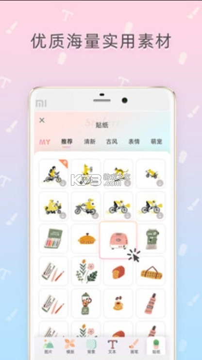 3. 支持自定义素材,背景颜色能随心自定义,还支持变色贴纸,切实满足个性化需求。