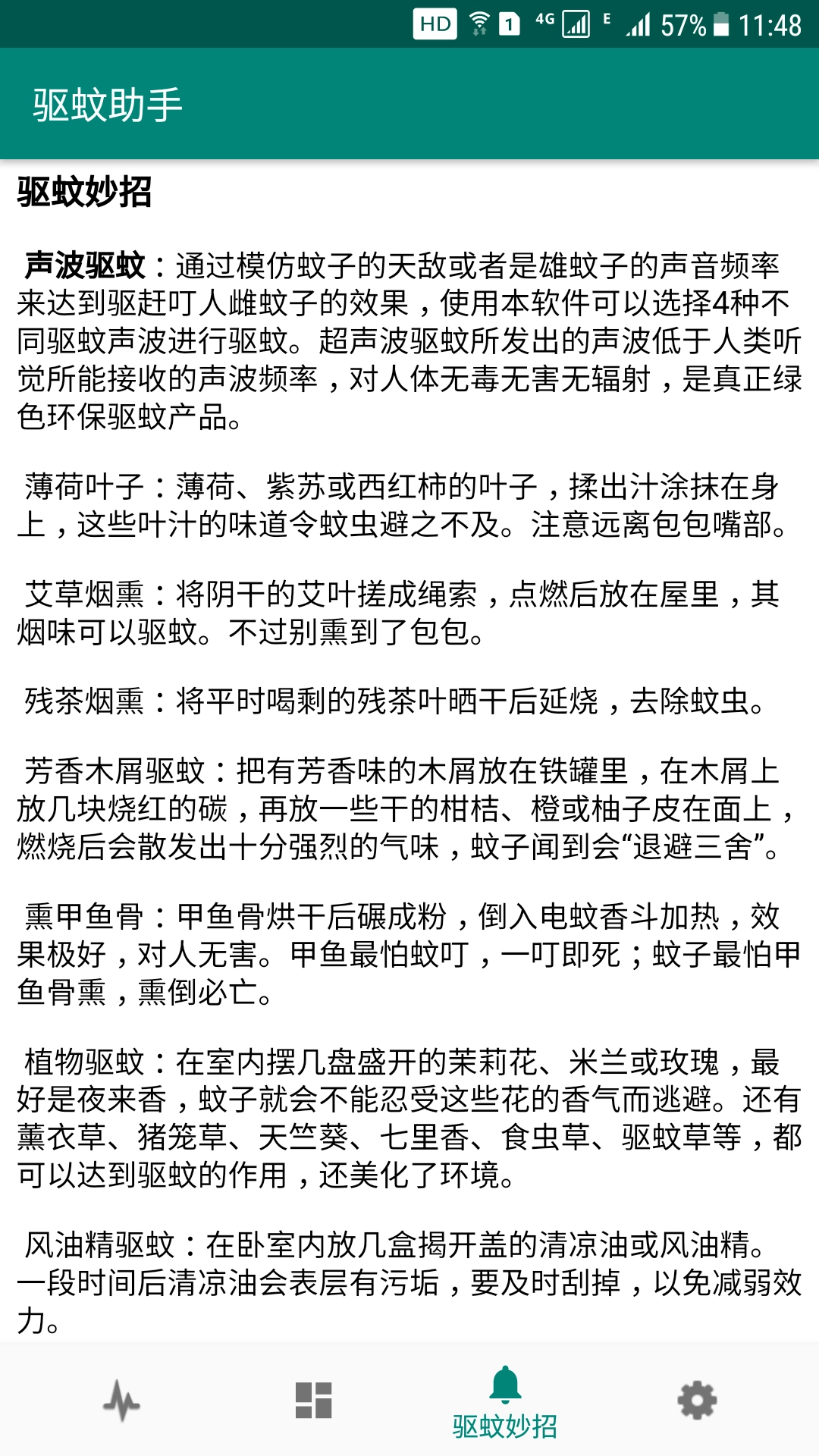 3、日常防护方面:驱蚊助手app借助声波来驱赶室内的蚊虫,从而降低化学驱蚊剂的使用量。