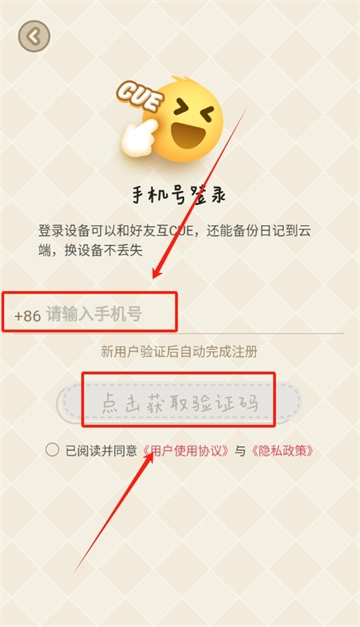 3、来到登录页面,填入自己的手机号码,随后点击“获得验证码”,待收到验证码后,将其填写进去,即可完成登录操作。