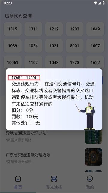 2、进入到软件首页,这里提供了违章代码查询功能和交通资讯等内容。