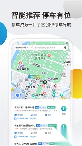 3、【智能】一键为您推荐附近停车场,找车位从此更智能。
