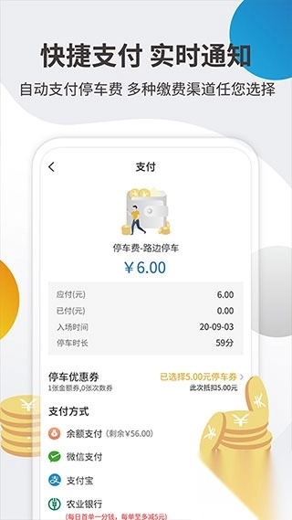 1、【快捷便利】可自动支付停车费用,还提供多种缴费渠道,您能按需选择。