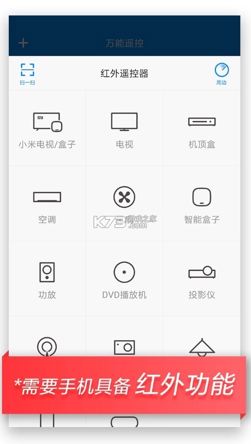 - 大部分具有红外功能的手机均可使用红外万能遥控和点击电视节目换台功能。
