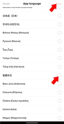 4、在弹出的语言选择界面中,把语言切换至繁体中文,随后点击右上角的“Done”选项就可以了。