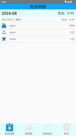 4、账单自动保存,从此无需担忧辛苦记录的账目丢失,日常记录管理变得更加轻松简便。