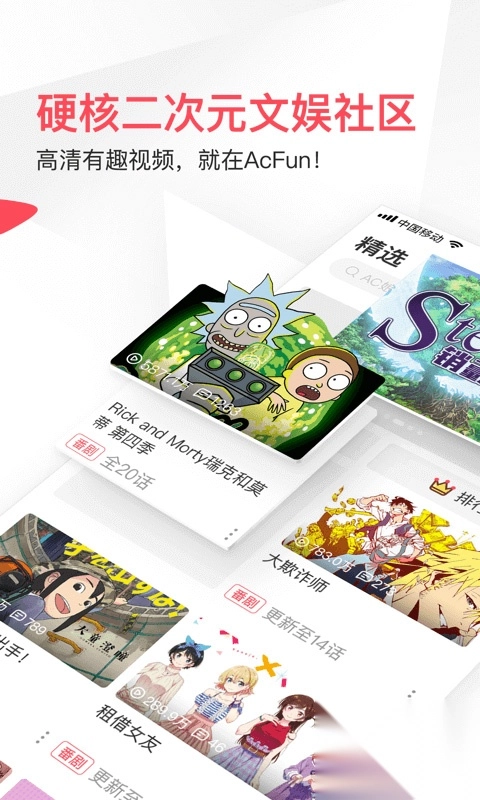 AcFun弹幕视频网,那句“认真你就输啦”,常逛A站的小伙伴们都再熟悉不过。作为国内弹幕视频网站的元老,A站自然配备了手机客户端——AcFun弹幕视频网App 。这款App与A站网站的数据同步更新,视频题材丰富多样,涵盖动画、游戏、音乐、娱乐、鬼畜、舞蹈、体育、知识等领域。用户不仅能观看各类题材的视频,还能发表弹幕与评论,对喜欢的视频进行收藏、下载和分享,拿着手机就能畅快逛AC娘。 值得一提的是,其超具粘性的二次元用户社交,营造出活跃的评论氛围。用户借助以弹幕内容为载体的正能量社交互动体系,赋予了平台产生和推广“创意”内容的能力。像金坷垃、鬼畜全明星、我的滑板鞋、小苹果等网络热门流行文化,便由此诞生。