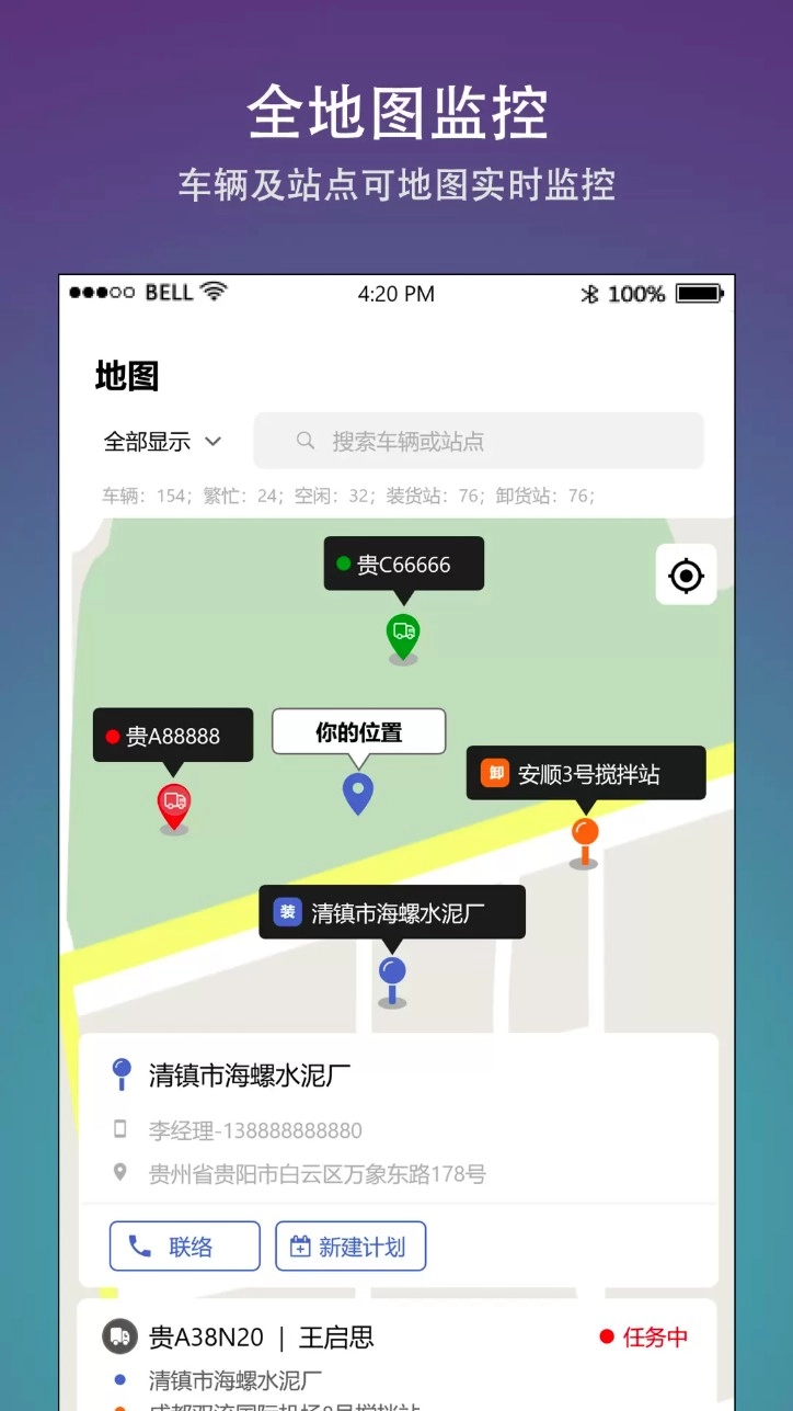 5. 切换至「地图」页面,就能实时查看车辆和站点的地理位置以及运输状态。