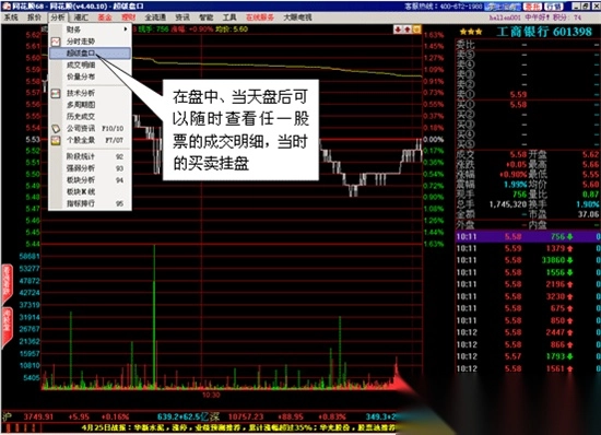 在这里您可以查看任一股票的详细成交状况,我们会将每一笔成交发生时的买卖挂盘变化重现在您的面前。