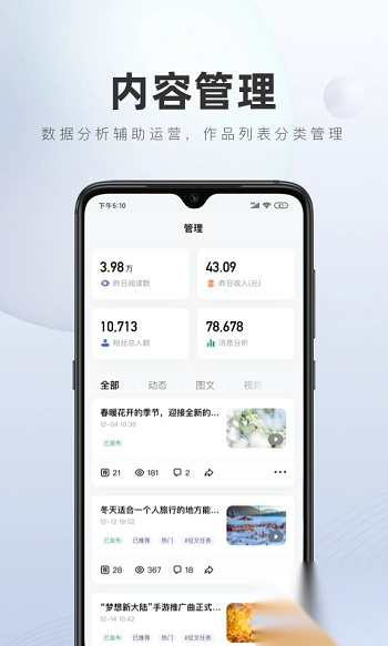 百家号APP为用户提供了一个便捷、高效的自媒体平台,适合各类内容创作者。无论是个人还是企业,借助于这个平台,都能够打破信息传播的壁垒,扩大受众群体。其数据分析和个性化传播功能,使得用户能够更精准地把握市场脉络,提高内容的价值和传播效果。对自媒体从业者而言,这是一个不可多得的成长工具,值得大家下载使用。
