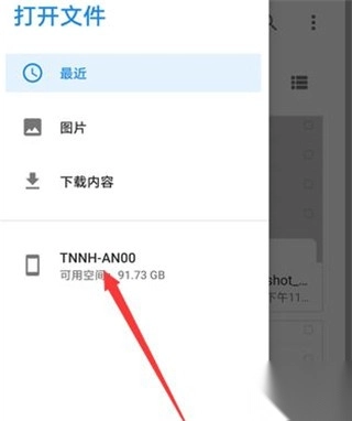 4、在屏幕左侧弹出来的菜单中点击含有手机图标的选项(即选择本地存储路径)。