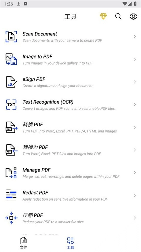 Xodo PDF中文版是PDFTron Systems公司推出的一款功能极为强大的PDF阅读编辑软件,它的官方名称是Xodo Docs 。这款软件凭借文字处理、电子表格、PPT演示这三大栏目所具备的独特功能,再加上数十种实用小功能,为用户打造了最高效便捷的移动办公体验。而且,软件的基础功能全部免费开放,没有任何广告,因而深受国内外用户的喜爱与追捧。 Xodo PDF中文版具备独特的手机阅读模式,字体清晰、翻页流畅,还能兼容桌面办公文档,支持用户在手机上对PDF格式文件进行编辑与阅读,像注释、编辑、签名、共享、填写PDF表单等操作都不在话下。同时,软件支持相机扫描录入,用户使用APP就能自动识别图片上的文字内容。另外,考虑到手机输入法输入函数较为吃力的问题,软件专门提供了专用公式输入编辑器,使用户录入公式更加快捷,大幅提升办公效率与使用体验。
