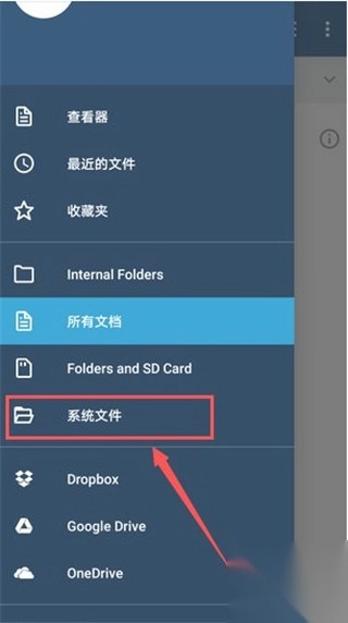 2、在屏幕左侧弹出的菜单栏中点击“系统文件”。