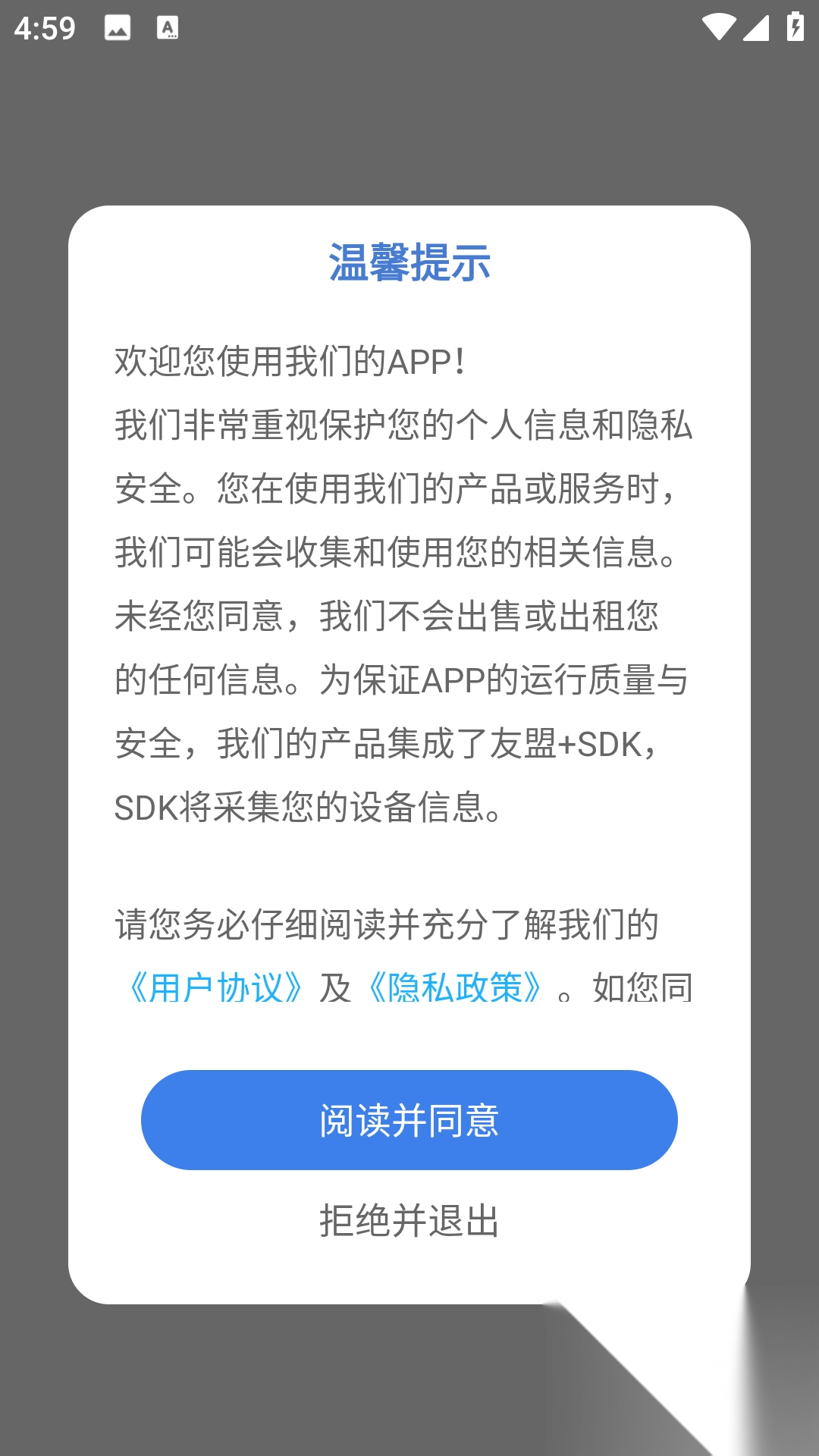 1、下载安装软件并打开,点击阅读并同意,进入软件主界面;