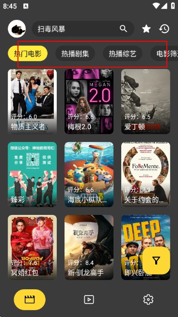 1. 开启XMBOX,点击首页左上角图标,即可切换影视源。