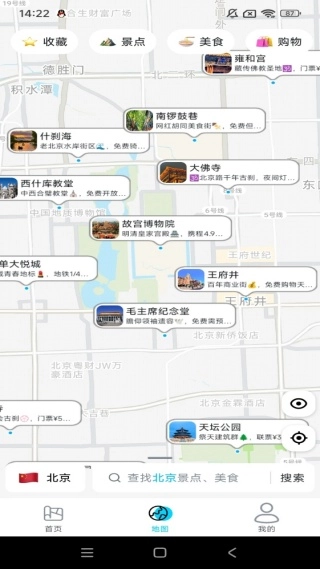3、地图功能免费查询,为你带来收藏以及各个景点的介绍。