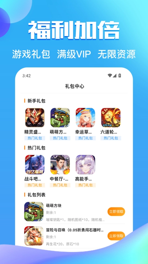 在礼包中心,用户能够查看各类游戏礼包的详细信息,并领取心仪的游戏礼包以供使用。