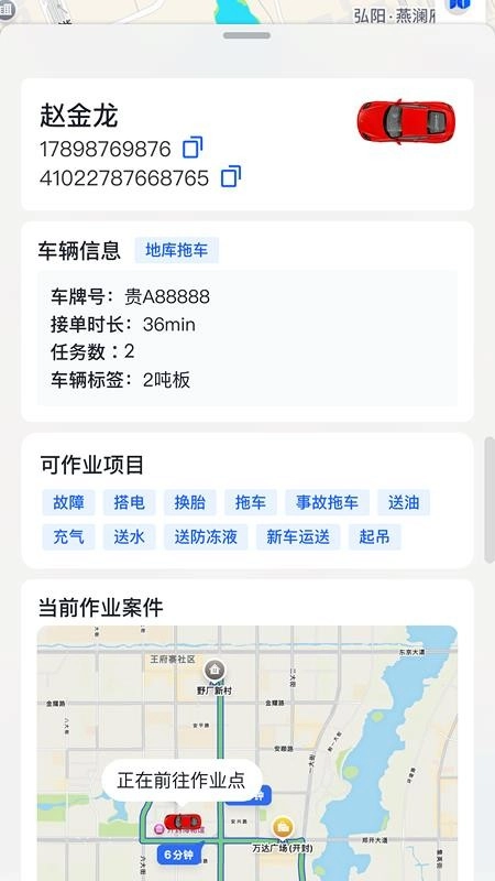 用户还能够对相关作业项目予以查看,随时随地查看并掌握车辆能够执行的项目,知悉作业案件。