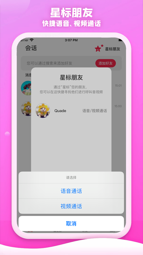 3、通过星标您的朋友,即可快速与TA进行语音、视频通话。