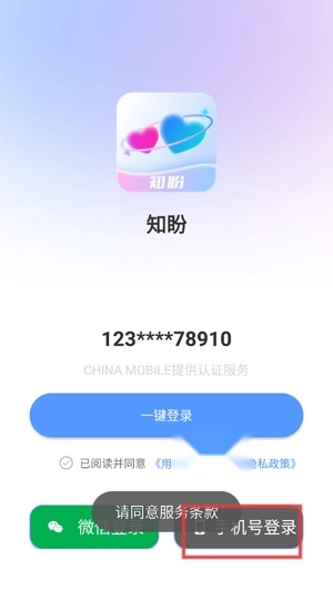 打开你的知盼App,点击手机号登录功能。
