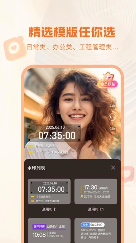 2、行业定制模板库:涵盖工程巡检、房产中介、微商等12个职业场景,拥有300+种专业水印模板,全方位满足各类工作证明需求。