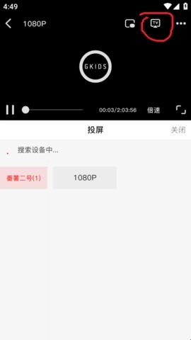 4. 屏幕出现“正在搜索设备”字样,待寻得目标设备后,点击即可实现投屏。