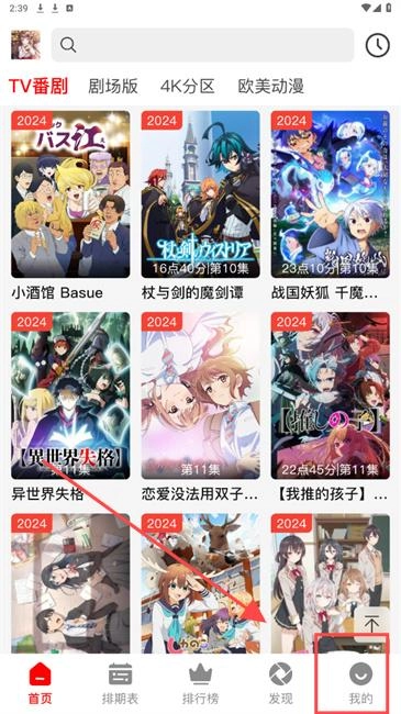 1.打开番薯动漫App,点击”我的“进入设置界面