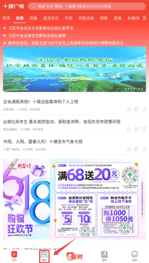 1、进入十堰广电APP后,在首页导航栏选择"视听"栏目,这里汇集本地最新新闻报道。