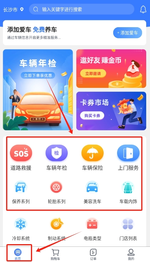 3、登录成功后,自动跳转回软件首页,在首页就能轻松使用车辆保养预约等各类功能啦。