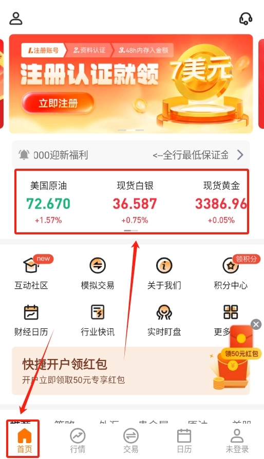 2、用户账号注册登录流程:打开软件,按系统引导完成注册登录,进入主界面即可查看汇率信息。