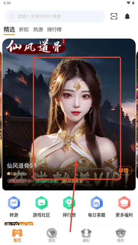 1. 打开软件进入首页后,选择自己心仪的游戏。