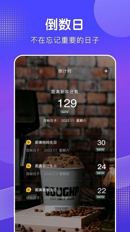 2、个性化设定:每次倒数都能设定独特的题目、备注与提示,增添记忆的趣味性。