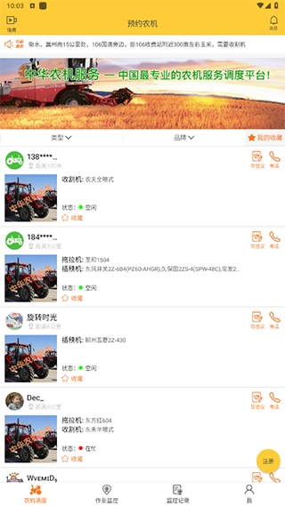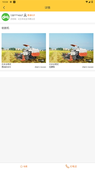 3、农机手可随意收藏农场主,农场主也可收藏农机手;