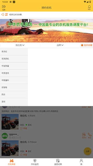 农忙服务模块主要是在当地有空闲的农机资源,提供农户找农机的服务;