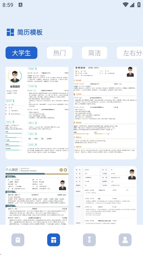 3、电子简历的简历模板类型丰富,能够适用于海量场景以及人群。