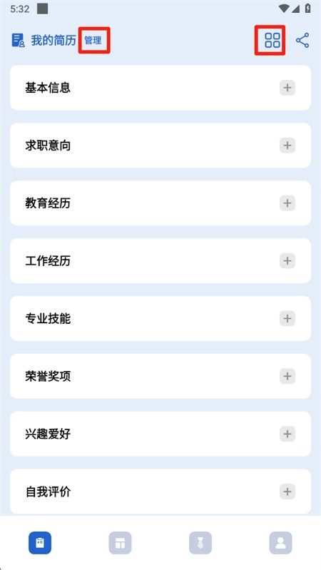 3、接下来,用户可依据指引对个人信息进行编辑,点击“管理”以及右上角的方块,就能便捷地管理模块信息。