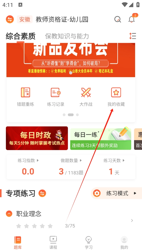 2. 用户能够点击进入练习模式,开启每日的做题训练。