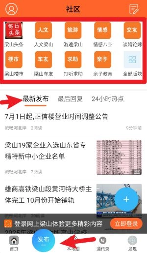 2、进入“社区”界面后,点击“最新发布”标签,便能浏览到网友们最新发布的求助、资讯以及话题帖等内容,并可及时参与互动交流。