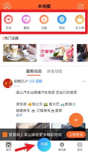 3、点击“本地圈”,可借助交友、避遇、附近等功能浏览本地热门动态,结识周边朋友并参与话题互动,更添亲切之感。