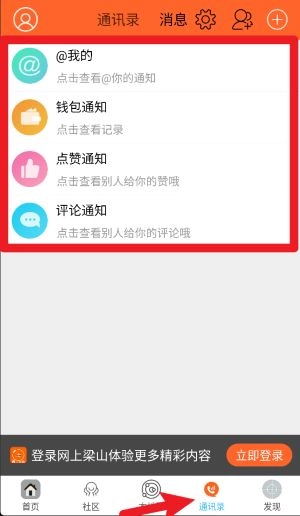 4、点击“通讯录”,即可查看所有通知类型,涵盖@提醒、点赞评论以及钱包变动,消息分类明确,便于快速查阅。